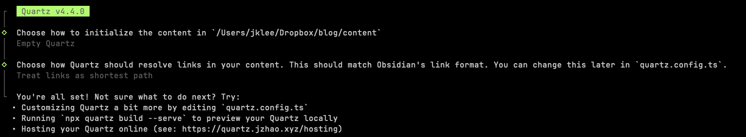 git clone https://github.com/jackyzha0/quartz.git blog quartz4 λ₯Ό git clone νμ¬ local μ λ°μ μ΄.