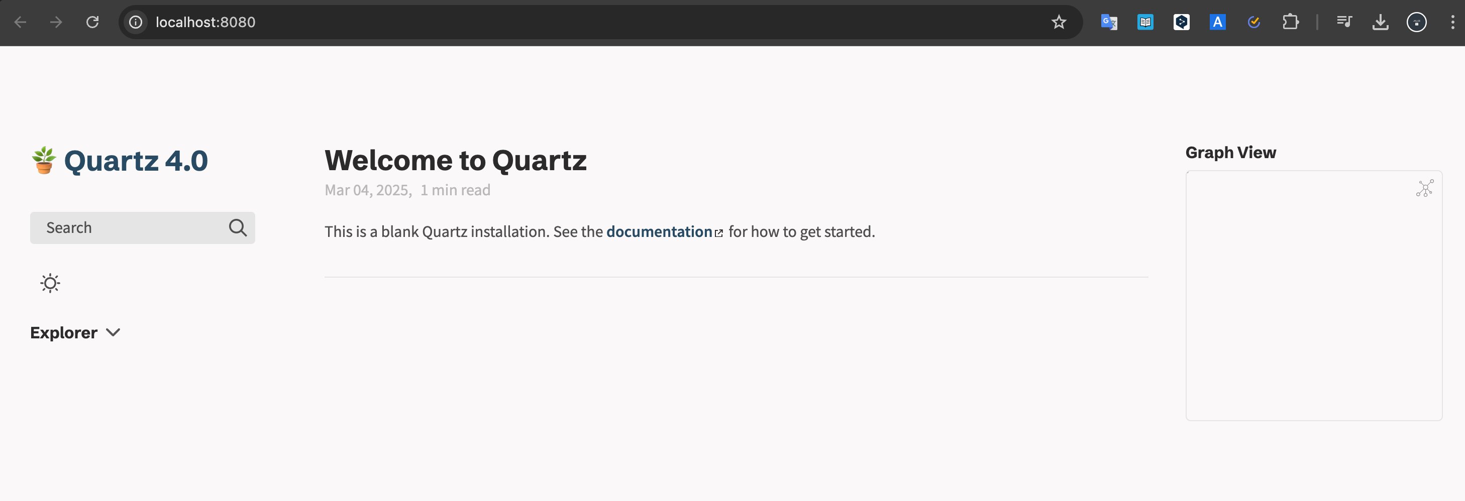 npx quartz build --servehttp://localhost:8080 μ μ νμ¬ νλ©΄ νμΈ