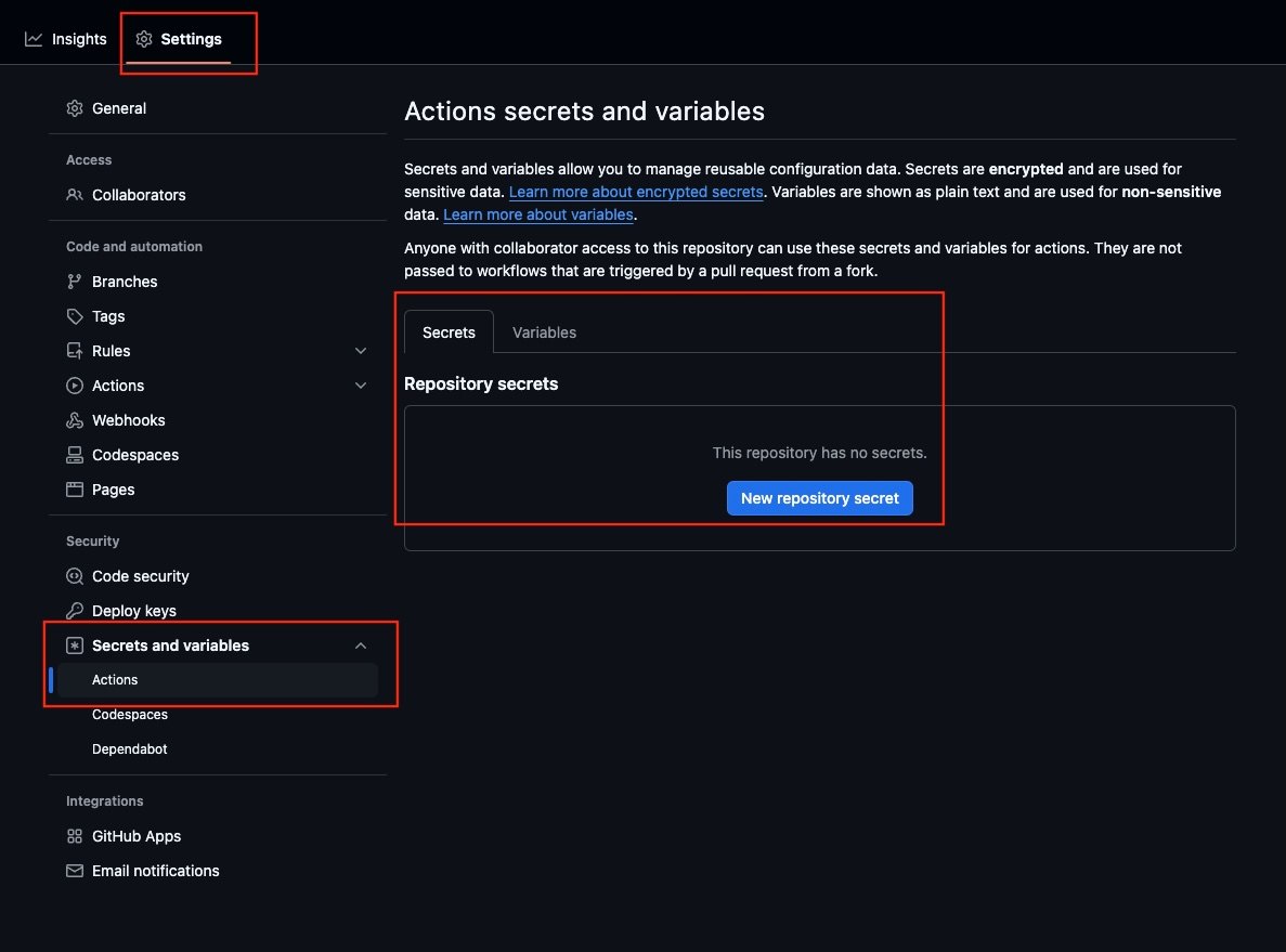 - GitHub 레포지토리 : Settings > Secrets and variables > Actions